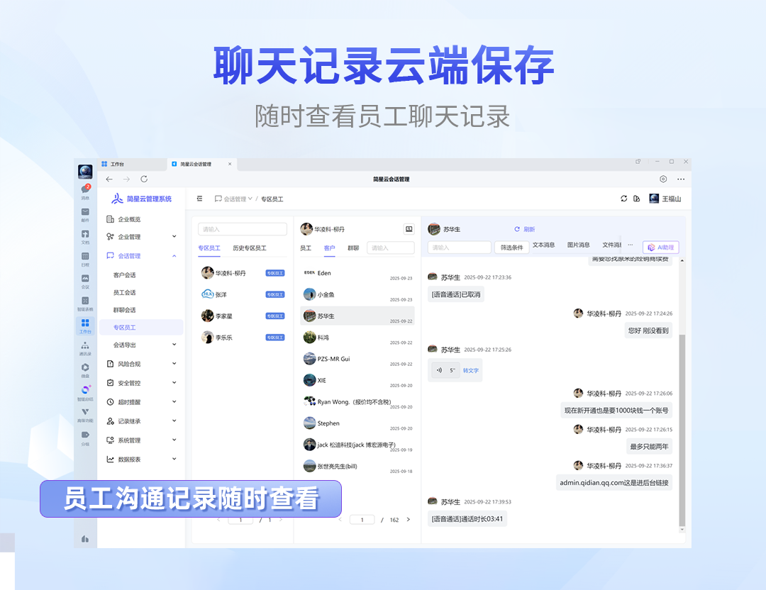 聚焦聊天记录云端保存和风险控制功能,解决客户资产留存问题
