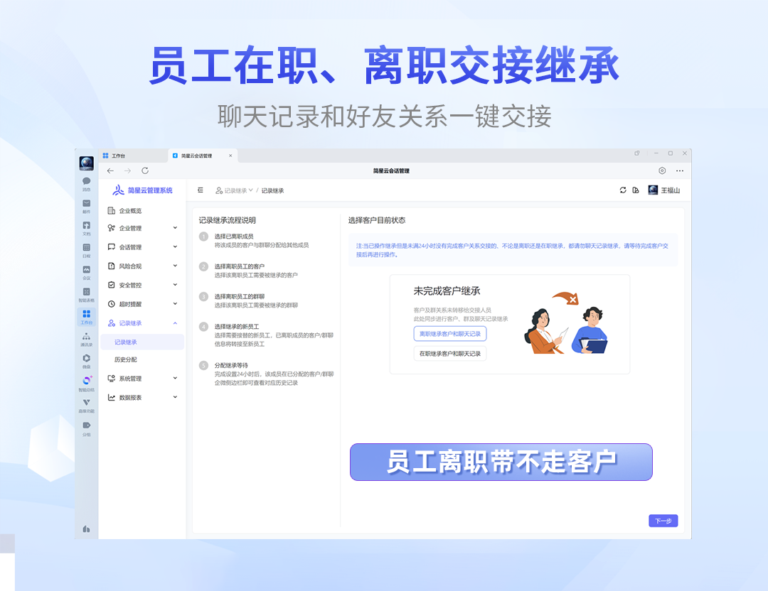 员工离职,聊天记录及客户一键交接