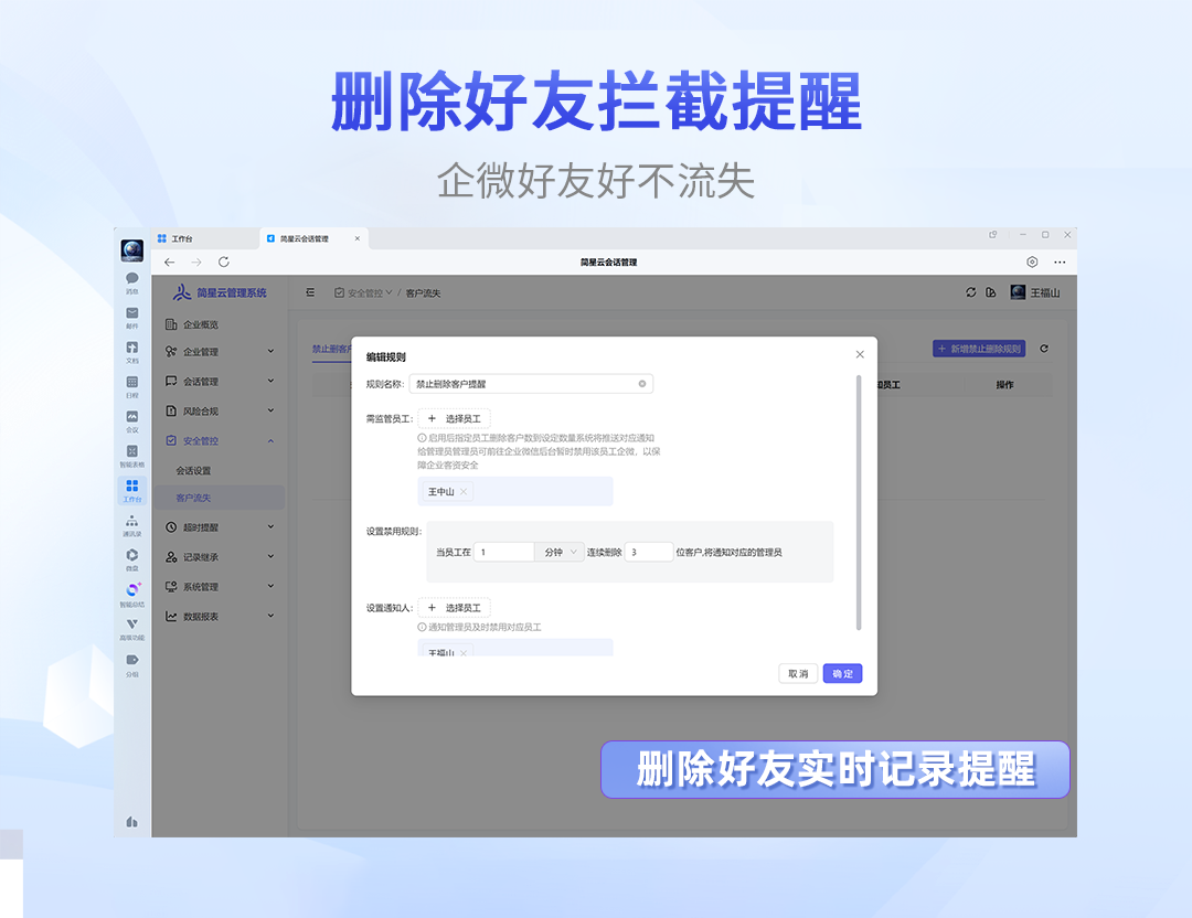员工删除客户,系统实时预警