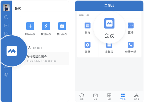 可在工作台和群聊中快速发起一场会议