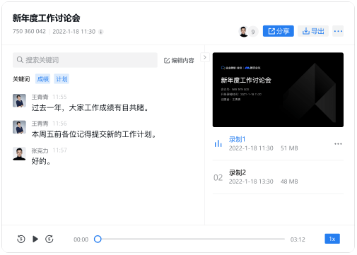 主持人可开启会议录制,录制完成后自动生成会议纪要