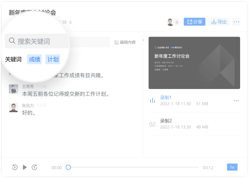 会议纪要支持搜索关键词,快速定位会议内容