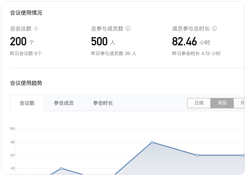管理员可在管理后台查看会议使用概况及管理会议记录