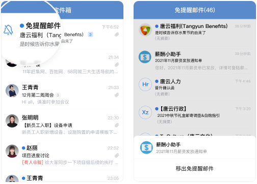 通知邮件自动收入免提醒文件夹,还可以对特定收件地址或文件夹个性化设置提醒,重要信息也不会被淹没