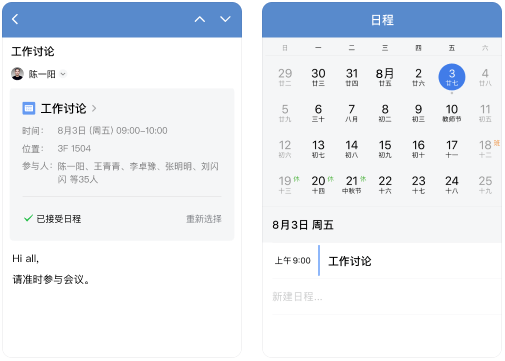 从邮件中发起的日程邀约,还可在日程应用中统一管理,工作安排不遗漏