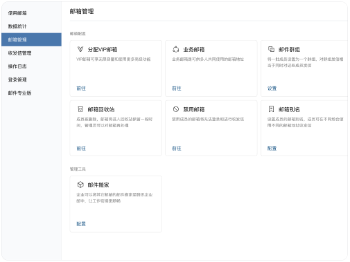 企业微信管理后台统一登入,提供业务邮箱、收发信管理、操作日志等邮件管理功能,让管理更统一、安全、高效
